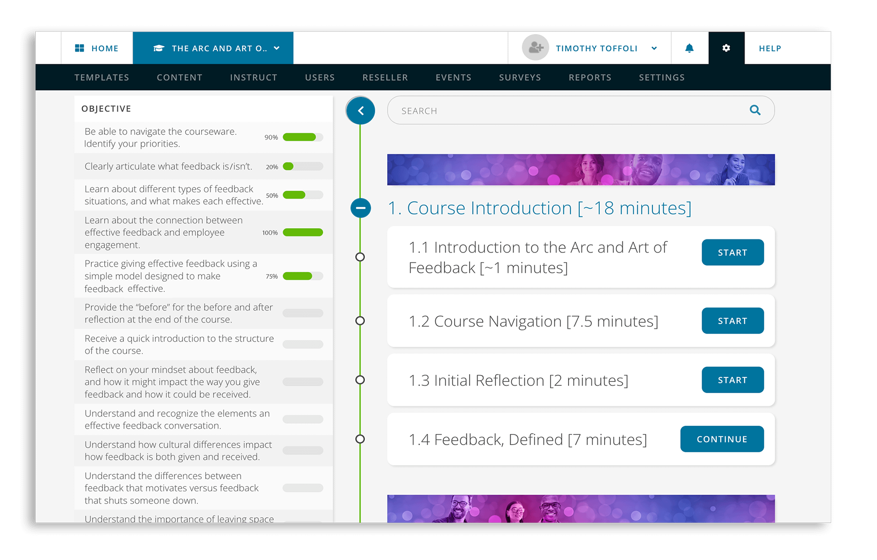 - Tracking progress toward learning objectives, the course offers opportunities along the way to test for understanding — helping reinforce and integrate learning without being overly academic.