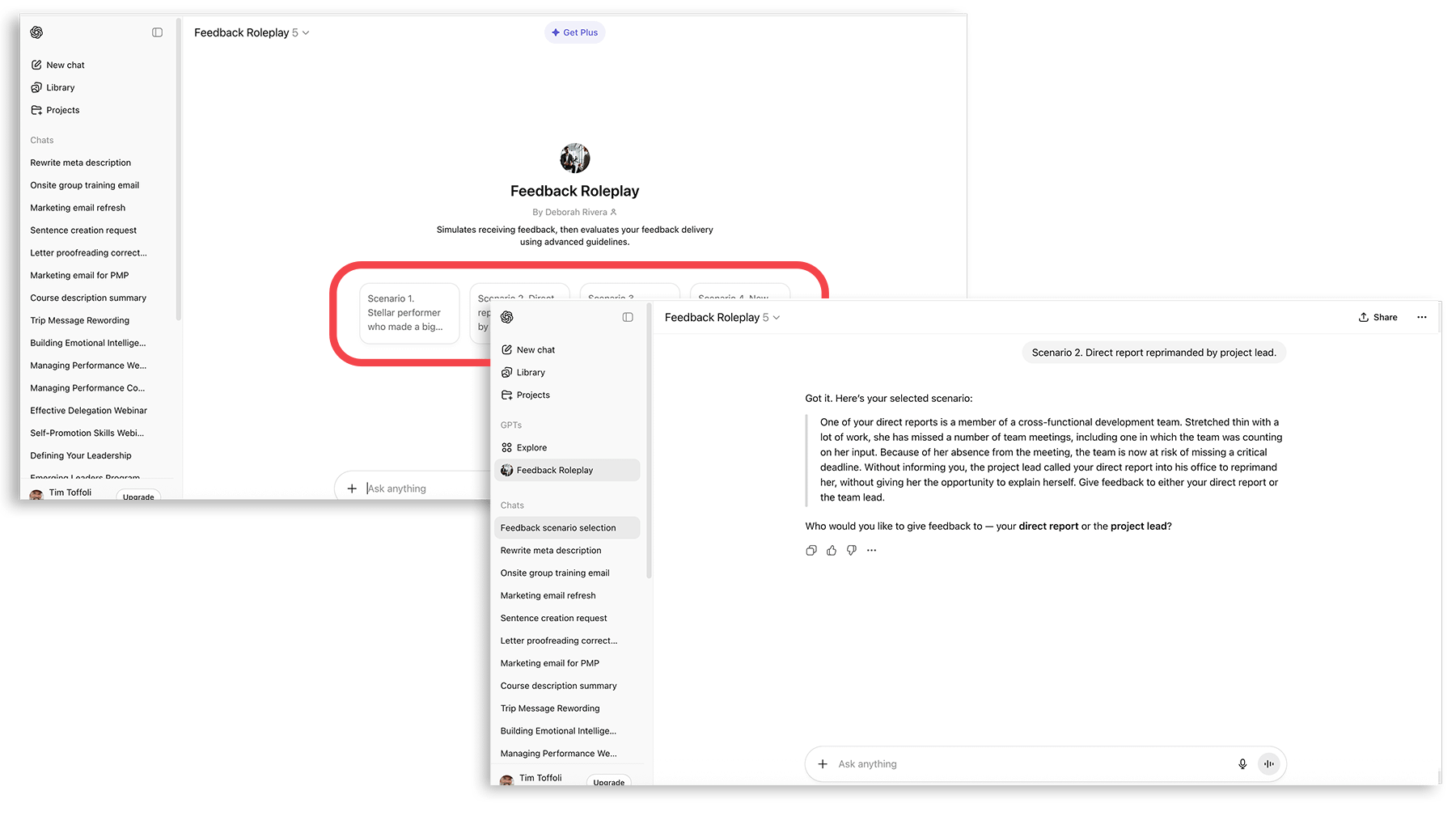 - Concepts come together with a variety of AI-driven feedback role plays, case studies and scenarios. Digital role play environment is designed to help you with a real world conversation using all the feedback guidelines that you’ve created.